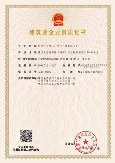 科銳特(廈門)凈化科技有限公司堅持以“細節(jié)決定成敗,品質(zhì)鑄就市場,口碑制造力量,感恩引導服務”的經(jīng)營理念,秉持可持續(xù)發(fā)展戰(zhàn)略,致力于工程業(yè)品質(zhì)及技術的完美追求。
